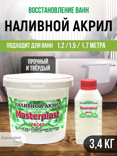 Жидкий акрил для ванны Masterplast 1,2-1,7 м. 3,4 кг