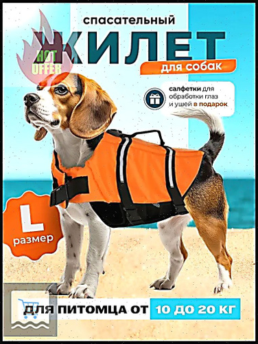 Спасательный жилет для животных, цвет ярко оранжевый, размер L