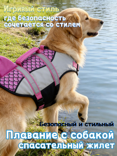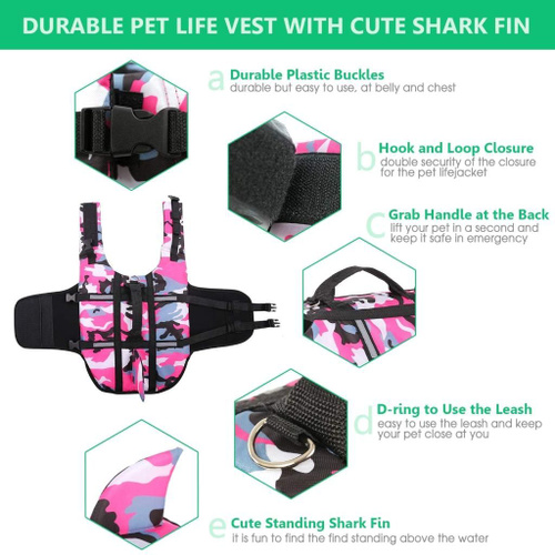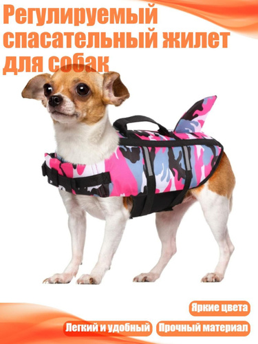 Регулируемый спасательный жилет для собак, - M - розовый камуфляжный шар