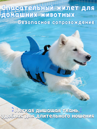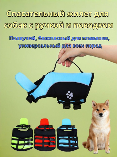 Спасательный жилет для собак с ручкой и поводком: Плавучий, безопасный для плавания, универсальный для всех пород синий S