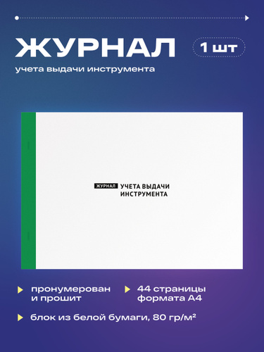 Журнал учета выдачи инструмента, 22 листа, прошит (1шт)