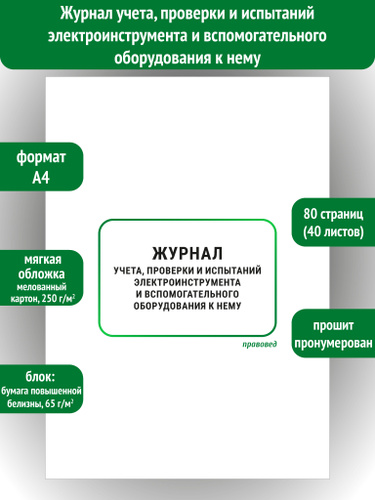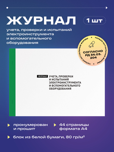 Журнал учета, проверки и испытаний электроинструмента и вспомогательного оборудования к нему