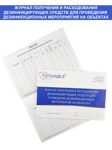 TOTALDIS PROFESSIONAL Журнал учета получения и расходования дезинфицирующих средств 32 страницы