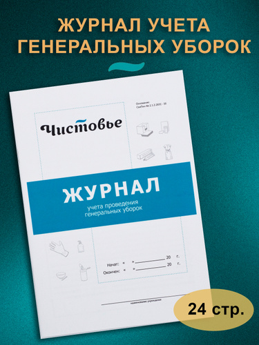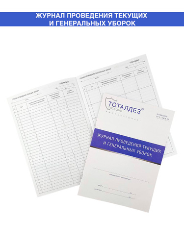 TOTALDIS PROFESSIONAL Журнал учета проведения текущих и генеральных уборок 12 страниц