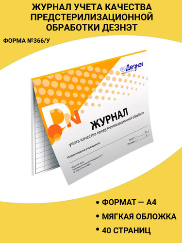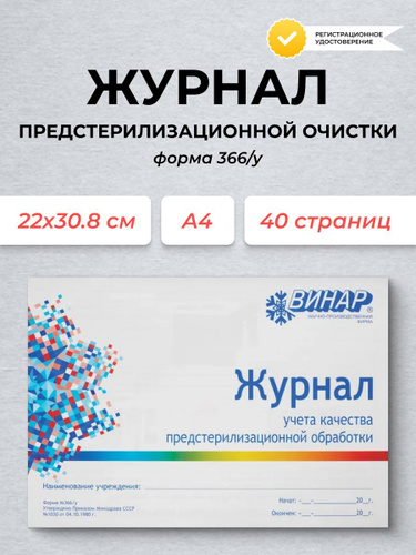 Журнал Винар для контроля и учета работы предстерилизационной очистки, форма 366