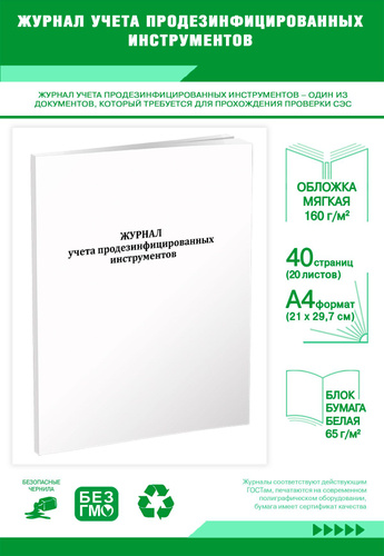 Книга учета / Журнал учета продезинфицированных инструментов. 60 страниц. Сити Бланк