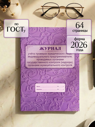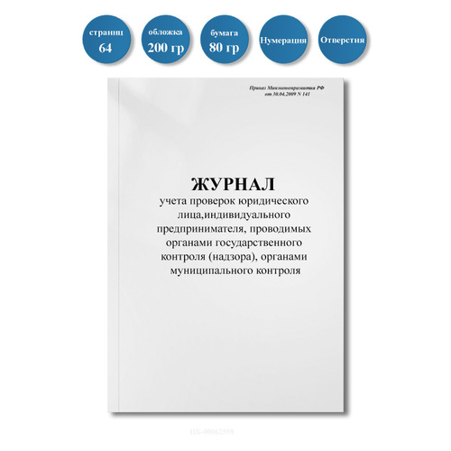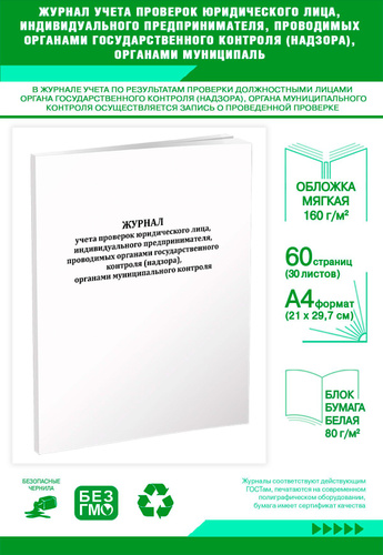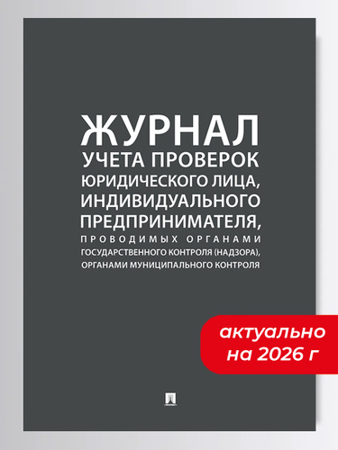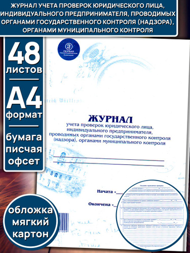 Журнал учета проверок юридического лица, индивидуального предпринимателя, проводимых органами государственного контроля (надзора), органами муниципального контроля, книга учета, 60 стр.