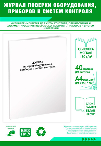 Книга учета. Журнал поверки оборудования, приборов и систем контроля. 40 страниц