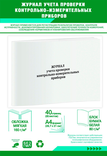 Журнал учета проверки контрольно-измерительных приборов. 40 страниц