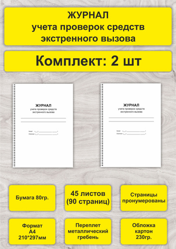 Журнал учета проверок средств экстренного вызова, комплект 2шт, А4, 45л. (90стр), спираль