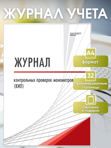 Книга учета. Журнал контрольных проверок манометров (КИП). 40 страниц