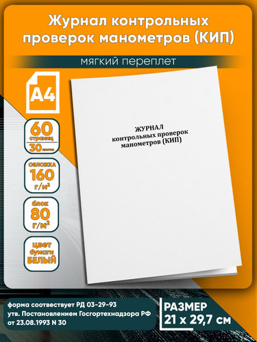 Книга учета. Журнал контрольных проверок манометров (КИП). 60 страниц