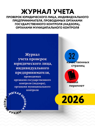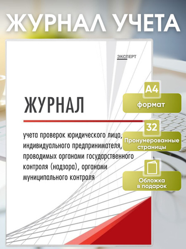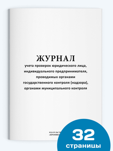 Журнал учета проверок юридического лица, индивидуального предпринимателя, 1 шт., 32 стр.