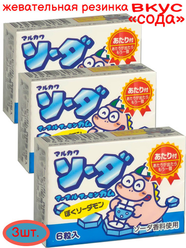 Марукава японская жевательная резинка, 6 шариков 8гр. вкус Сода; 3 пачки