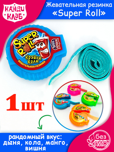 Жевательная резинка SUPER ROLL СУПЕР РОЛЛ (1шт - 10гр) конфеты Канди Клаб. Жвачка ассорти со вкусом кола, вишня, манго, дыня. Набор сладостей в подарок для детей, сюрприз на день рождения, Новый год