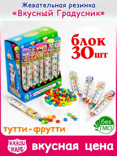 Жевательная резинка ВКУСНЫЙ ГРАДУСНИК (блок 30шт по 7гр) конфеты Канди Клаб. Мини жвачка ассорти со вкусом тутти - фрутти. Набор жевачек, сладости в подарок детям, сюрприз на день рождения, Новый год