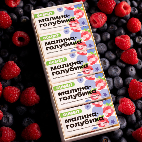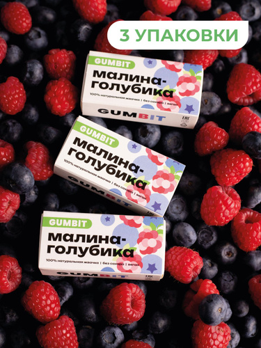 Натуральная жевательная резинка GUMBIT со вкусом Малина-Голубика, 3 упаковки