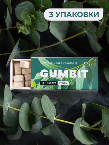 Натуральная жевательная резинка без сахара GUMBIT со вкусом Эвкалипт, 3 упаковки