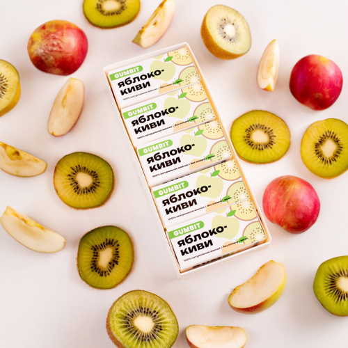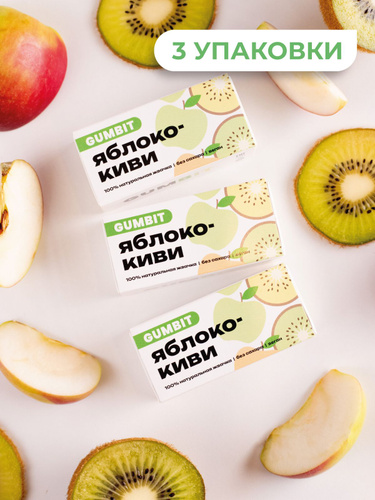 Натуральная жевательная резинка GUMBIT со вкусом Яблоко-Киви, 3 упаковки