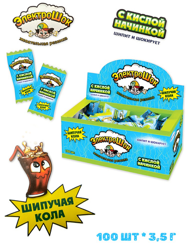 Жевательная резинка "Электрошок" с кислой начинкой КОЛА / 3,5 г * 100 шт