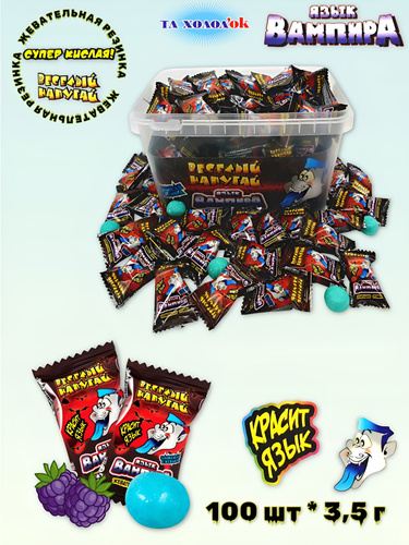 Жевательная резинка "Язык вампира" со вкусом ежевики, красящая язык / 3,5 г * 100 шт / Холодок