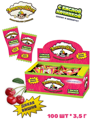 Жевательная резинка "Электрошок" с кислой начинкой ВИШНЯ / 3,5 г * 100 шт