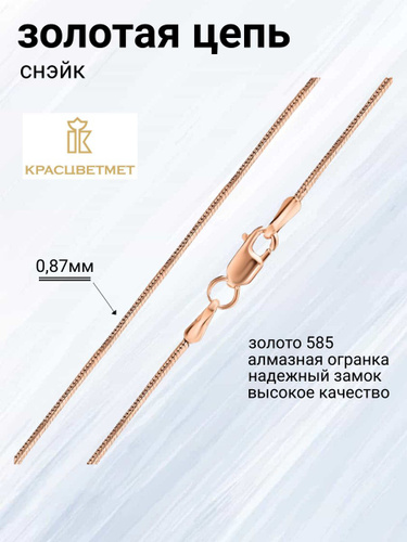 Krastsvetmet Цепочка Золото красное 585 пробы, плетение Снейк