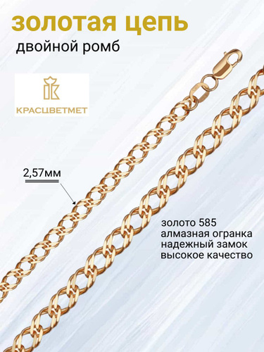 Krastsvetmet Цепочка Золото красное 585 пробы, плетение Двойной ромб