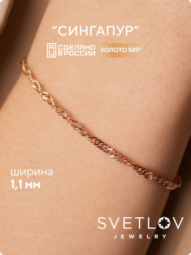 SVETLOV Золотой браслет на руку 585 пробы плетение Сингапур, ширина 1.1 мм