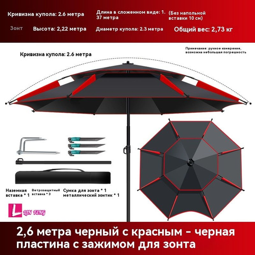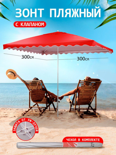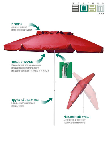 Зонт "ВИКЭНД 32" c возможностью наклона купола, диаметр купола d 2,4 м., высота 2,2 м., красный
