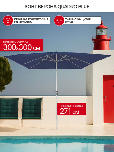 Зонт Верона Quadro White 300 см 3х3 м, квадратный, синий, на центральной опоре