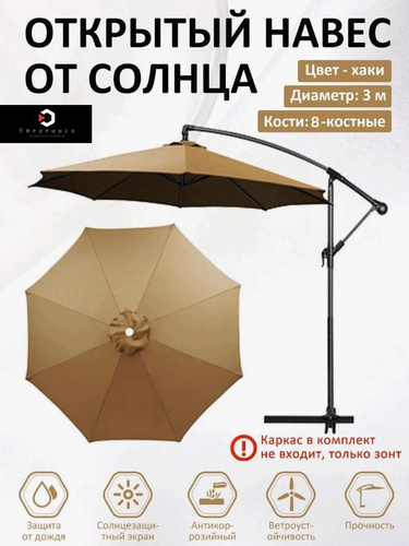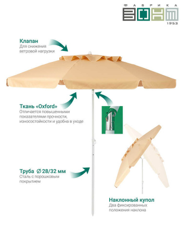 Зонт "ВИКЭНД 32" c возможностью наклона купола, диаметр купола d 2,4 м., высота 2,3 м., бежевый