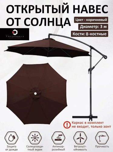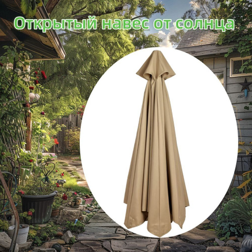Тент-крыша для зонта беседки, 4 метра в диаметре (зонт из 8 спиц), темно-бежевый
