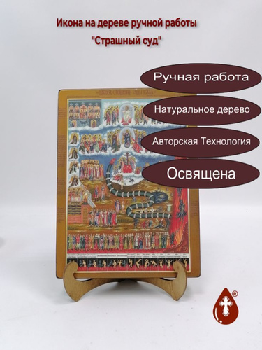 Освященная икона на дереве ручной работы - Страшный суд, 21x28x3 см, арт Ид4878