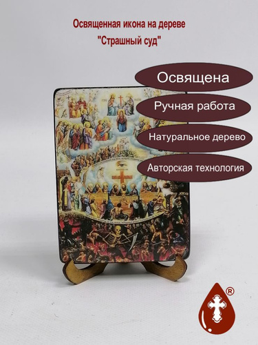 Освященная икона на дереве ручной работы - Страшный суд, 15х20х1,8 см, арт Ид4877