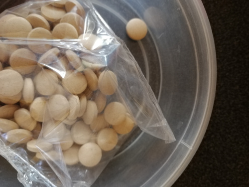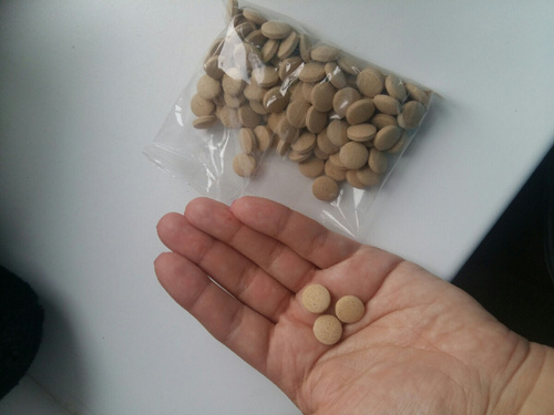 Гарантируемые показатели на 1 таблетку: протеин 30%, жир 1%, клетчатка 15%, зола 11% (на сухое вещество), влага 9%, кальций 0,4%, фосфор 0,5%, рыбий жир — 5 мг, витамин А — 50 МЕ, витамин D3 — 5 МЕ, витамин Е — 400 мкг, таурин — 500 мкг.