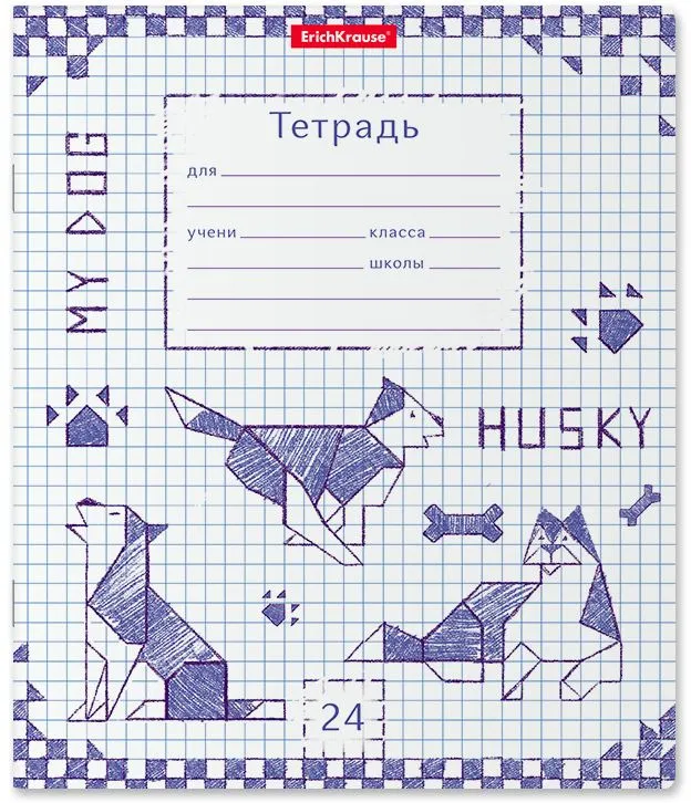 Тетрадь школьная ученическая формата А5+ (170х203 мм). Обложка из высококачественного мелованного картона плотностью 170 г/м2. В блоке 24 листа в клетку с полями. Бумага офсетная плотностью 60 г/м2. Цвет линовки - синий. Скругленные уголки обложки и блока. Тип скрепления - скоба. Тетради упакованы в термоусадочную пленку по 10 штук.
