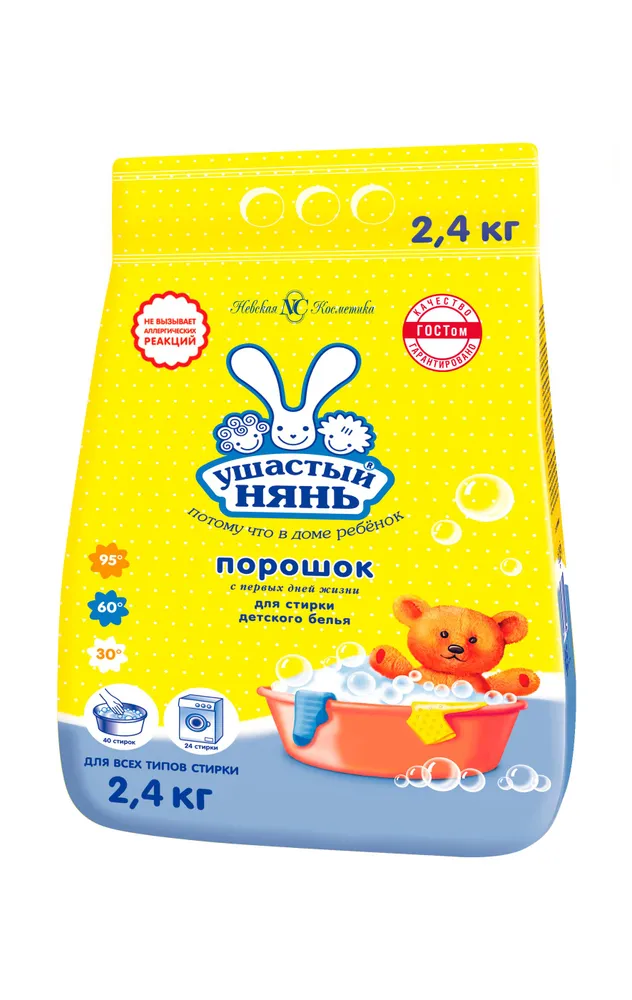 Не забывайте, что здоровье вашего ребенка — это превыше всего, и выбирая стиральный порошок, важно остановиться на безопасном варианте. Стиральный порошок "Ушастый нянь" сочетает в себе высокую эффективность стирки и заботу о нежной коже вашего малыша, предотвращая риск аллергических реакций.