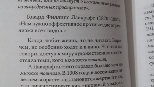 Мишель Уилбек как всегда на высоте на ето раз он описывает жизнь такой неординарной личности как Лавкрафт я узнал много чего нового об етом писателе и заадно получил удоволствие от едких замечаний Уилбека