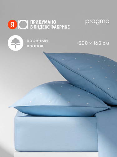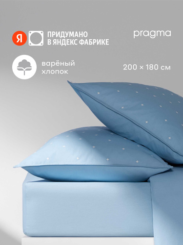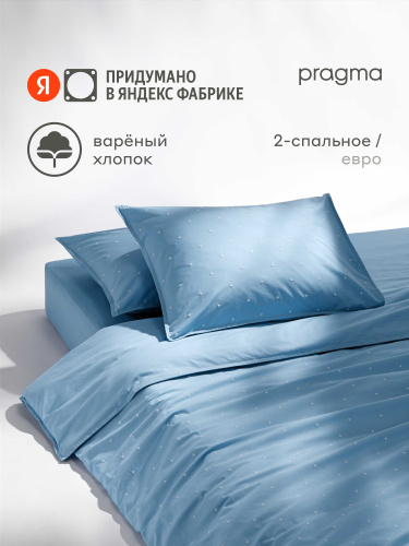 Комплект постельного белья без простыни двухспальный, Pragma 26, снежный синий, Яндекс Фабрика