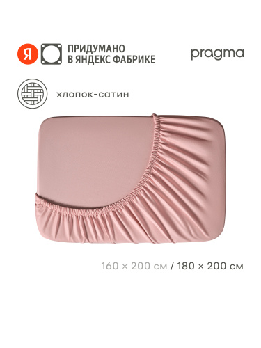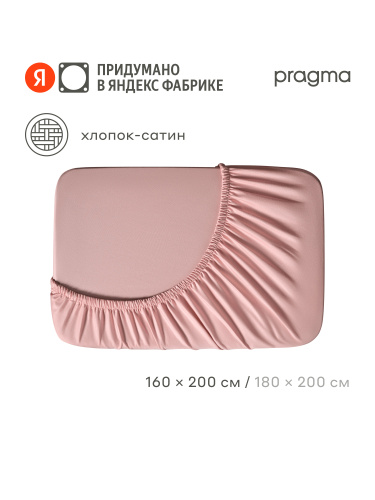 Простыня на резинке сатин Pragma Lunlo жемчужный розовый, 160х200 см, Яндекс Фабрика