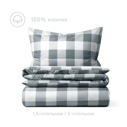 Комплект постельного белья без простыни, Pragma Hilhom, 2-х спальный, серый, Яндекс Фабрика
