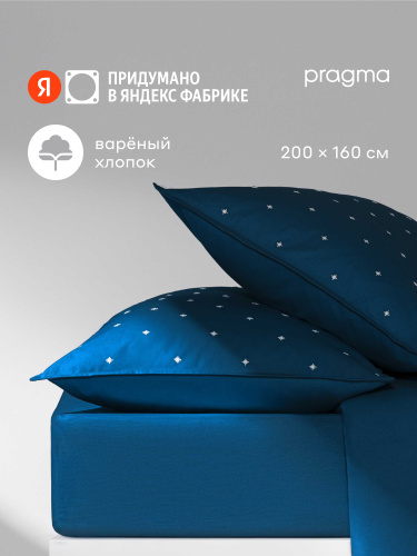 Простыня на резинке Pragma Sherneby, синий, 160х200 см, Яндекс Фабрика