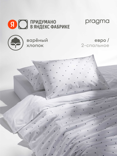 Комплект постельного белья без простыни евро, Pragma 26, снежный белый, Яндекс Фабрика