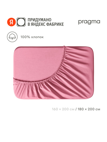 Простыня на резинке Pragma Munso 180*200 розовый попурри, Яндекс Фабрика