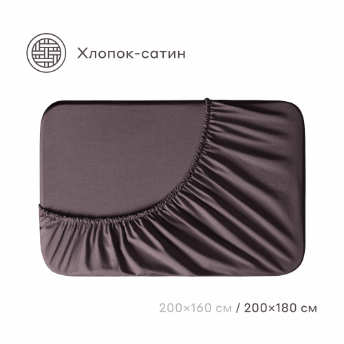 Простыня на резинке сатин Pragma Lunlo сатиновый тауп, 160х200 см, Яндекс Фабрика