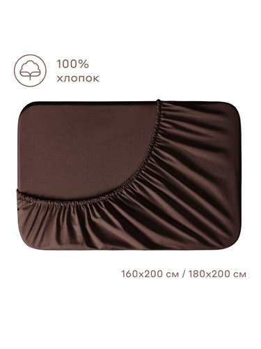 Простыня на резинке Pragma Telso тёмно-ореховый, 180х200 см, Яндекс Фабрика