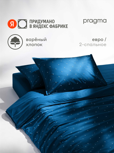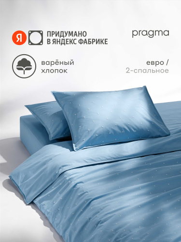 Комплект постельного белья без простыни евро, Pragma 26, снежный синий, Яндекс Фабрика