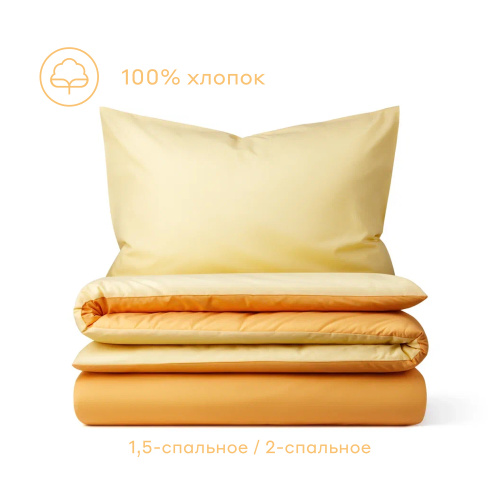 Комплект постельного белья без простыни, Pragma Hilgam, 2-х спальный, персиково-желтый, Яндекс Фабрика