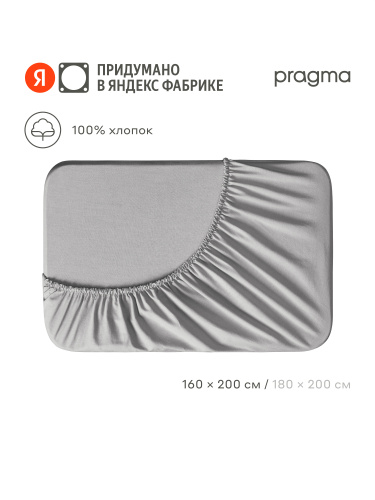 Простыня на резинке Pragma Telso прохладный серый, 160х200 см, Яндекс Фабрика